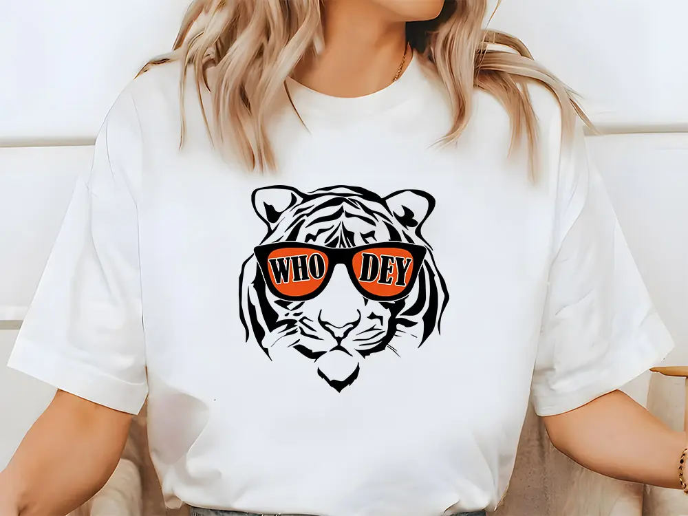 Who Dey Tiger SVG digital design mockup on a t-shirt